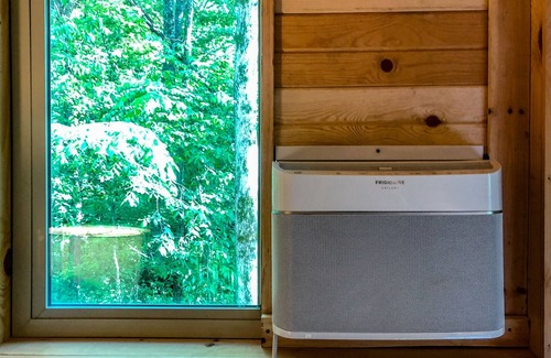 Because the cabin is shaded, the ceiling fan is often sufficient for cooling, and we also provide a high capacity window AC unit that can cool the entire cabin.