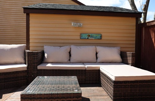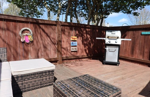 Private fenced deck with BBQ grill and patio furniture for ultimate relaxation.