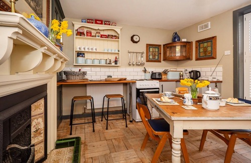 This distinctive Grade II Listed property offers a unique stay in a renovated townhouse adjacent to a historical chapel in Cromer, Norfolk. The cottage accommodates up to two guests with a cozy double bedroom located on the top floor, complete with an expansive bay window offering partial sea views. The middle floor features a relaxing lounge, and the ground floor includes a well-equipped kitchen styled with a vintage 1940s and 50s aesthetic, along with a shower room and toilet. Guests also have access to the chapel's lounge area during the daytime, though access to the mezzanine is restricted. Pets are welcome for an additional fee, making it an ideal choice for those traveling with their furry companions. Located just moments from Cromer’s sandy beaches, this property provides an ideal base for exploring the town and surrounding Norfolk Coast. Cromer is known for its rich history, quirky shops, and museums, with the famous Banksy artwork nearby. The coastal area offers opportunities for surfing, scenic walks along the Norfolk Coast Path, and visits to local landmarks. Guests can also enjoy the lively pier and vibrant atmosphere of the town. On-street parking is available for convenience, and the town’s amenities are easily accessible for a full seaside experience. The townhouse is designed for a self-catered stay, featuring a fully equipped kitchen with all essential appliances. The shower room is on the ground floor, offering convenience for guests. Heating is included for added comfort, and there is a TV for entertainment. Though the property does not have Wi-Fi, it provides excellent mobile data reception. A refundable security deposit is required, and there is an additional charge for pet accommodation.