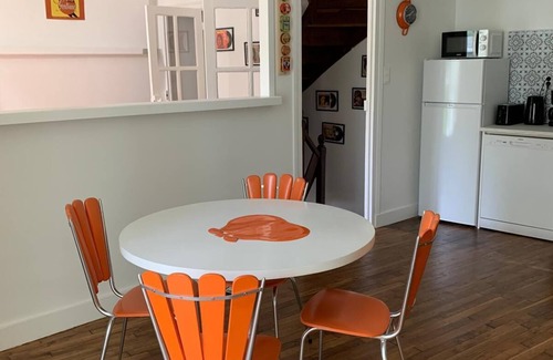 Townhouse with garden access! Barque Fleurie and its 60s decor is located in Aubeterre-sur-Dronne. Townhouse with garden access! Barque Fleurie and its 60s decor provides accommodation, featuring Bedding/Linens, Wellness Facilities, Fireplace/Heating, among other amenities. This House features Bedding/Linens, Wellness Facilities, Fireplace/Heating, to make your stay a comfortable one.
