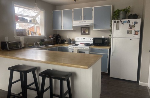 Backyard is home to hens and 2 outdoor cats. Owner will periodically stop by to care for animals and to do yard work. When not booked owner and 2 dogs call this place home. Please do not bring your pets with you.