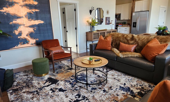 Enjoy small-town luxury in Townsend with our chic 2-bed, 2-bath condo featuring leather couches, velvet accents, fun decor, arcade games, and a fully stocked kitchen. The living room offers extra sleeping space with a pull-out couch. This building from early 1900s offers tons of unique charm and has been fully remodeled. Great views, full of sunlight and located downtown Townsend. You can be fully entertained without ever leaving!