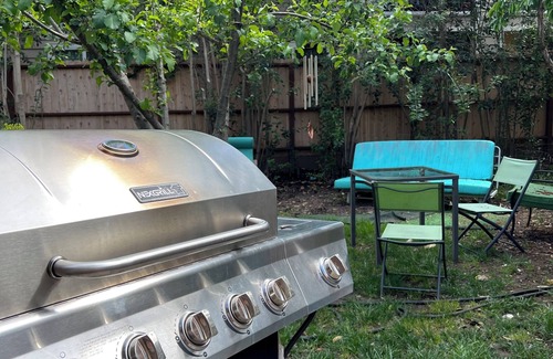 Discover serenity in this charming 1-bedroom apartment, quietly nestled at the rear of a peaceful triplex in a lush garden setting. Ideal for solo travelers, couples, or small groups, the apartment features a comfy queen bed and a living room with a sofa bed for additional guests.