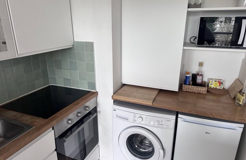 The kitchen is equipped with an oven and a dishwasher, as well as an electric kettle, a microwave, and cookware. Enjoy the free WiFi and TV. Bathroom amenities include a hair dryer, towels, and toilet paper. And thanks to the washer and dryer, you'll even be able to travel light. Other amenities at this 1-bedroom, 1-bathroom rental include bed sheets, an ironing board, and heating.
