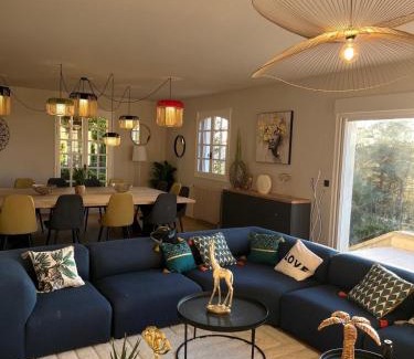 Offering a garden, Très grande maison de caractère - 15 personnes rénovée offers accommodations in Ussel. This property offers access to a terrace, free private parking, and free Wifi. Neuvic d'Ussel Golf Course is 13 miles away and Chammet Golf Course is 27 miles from the villa. The villa features 8 bedrooms, a fully equipped kitchen with a dishwasher and an oven, a washing machine, and 5 bathrooms with a hair dryer. Towels and bed linen are offered in the villa. For added privacy, the accommodation features a private entrance. Val Saint-Jean Golf Course is 30 miles from Très grande maison de caractère - 15 personnes rénovée. Aurillac – Tronquières Airport is 62 miles from the property.