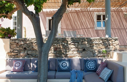 For moments of quiet repose, the built-in sofa on the lower terrace offers the