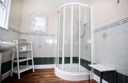 On the ground floor: The lounge offers guests comfortable seating for up to 4 guests, TV and a wood-burning stove. The dining room has a dining table and chairs seating 4 guests. The kitchen is equipped with an electric oven, hob, fridge/ freezer, microwave, dishwasher, washing machine and ample pots, pans and kitchenware. The windows overlook the gardens. The shower room has a shower cubicle, wash basin and toilet.