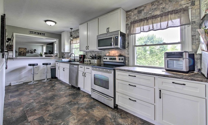 Trade your daily worries for a relaxing escape to De Soto when you book this 3-bedroom, 2-bathroom vacation rental house, just steps from LaChance Vineyards! This house has everything you need for a modest escape to the rolling hills of Missouri, including a furnished sunroom, a spacious yard, a gas grill, a sleek kitchen, and farmhouse decor, promising a stylish country retreat. If you're looking to venture out, explore Washington State Park or take a day trip to Downtown St. Louis!