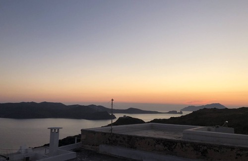 The house is a renovated old traditional cycladic house with thick stone walls, a flat roof with a phantastic roof terrace with view to the sunset over Milos harbour bay. Surrounded by traditional houses. It has a cosy little Veranda.