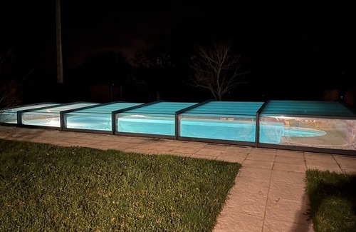 • 5 x 10 m pool (1,20 to 1,80 m deep), secured with retractable rigid shelter, NF P90-309 and solar shower.