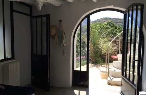 Fully restored in 2015, the house has two levels: the traditional party house, overlooking a terrace overlooking the garden and the valley; and "Katoi" the lower part, old cellar where the inhabitants of the Cycladic islands were storing the harvest, the jars (oil and wine), dried figs, potatoes, hay for the animals or agricultural tools.