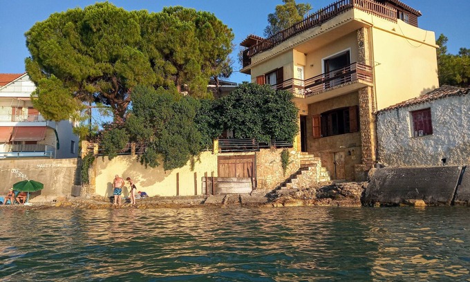 traditional house on the beach in Mikri Mantineia.The closest house to the sea. Far from, but also close to the big city of Kalamata (10 km). It is situated in a extraordinary spot of a very picturesque village of the Kalamata's seaside. Living there is like you are travelling in a ship. Built on a rock it is between the mountain and the sea giving a relaxing sensation of being in the nature. The beach where the house is on is safe and clean for swimming. You can even fish from the balcony. It has many amenities for a creative life there.
