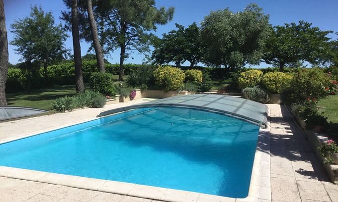Peace and relaxation guaranteed in this large gite with access to a private swimming pool of 12m x 6m. The swimming pool is covered with a removable dome which allows swimming very early in the season.