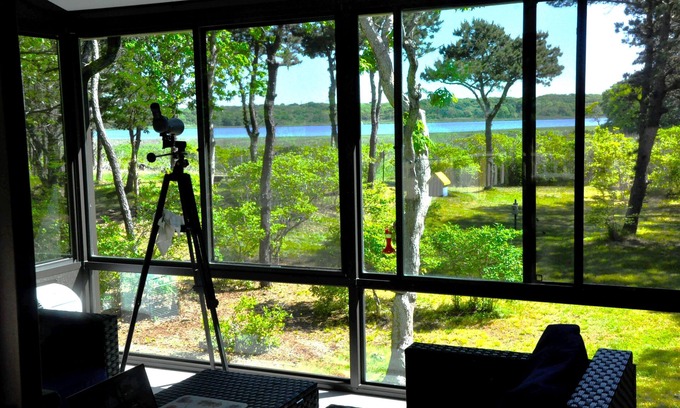 This cozy yet spectacular waterfront beach Cottage abuts and overlooks “the Let” – Bay of Westport River. The secluded house is built on a barrier beach and is surrounded by wooded preservation lands inside Horseneck Beach State Reservation, offering the freedom of roaming yet with maximum privacy. Wildlife is abundant. “Bay - The Let” is in the backyard and Horseneck Beach is across the street. Walking distance to Gooseberry Island and Massachusetts Audubon Wildlife Sanctuary “Allens Pond”.