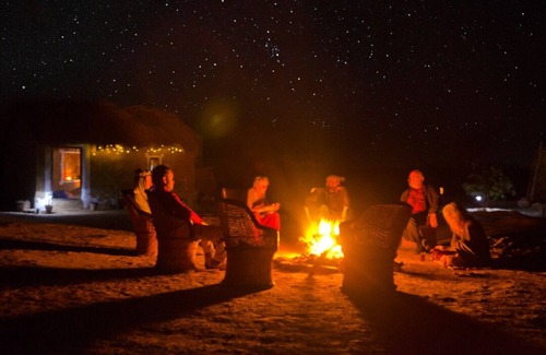 We are located in the desert, with traditionally decorated mud houses. We use a wood fire for cooking, water from the well for shower and small solar lights for lighting. This is a tranquil place to stay and experience how people live in the desert away from the hustle of the city. A chance to see the flora and fauna of the desert. Sharing stories around the fire under the stars with just the sound of silence. Camel safari can be arranged on request.