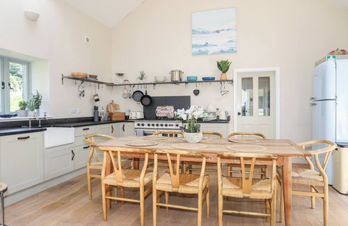 Amenities: Underfloor heating. Falcon range cooker with oven and gas hob, microwave, fridge/freezer, kettle, toaster and Smeg coffee machine, dishwasher, washer/dryer. Smart TV, Sonos speaker. Full Fibre WiFi. 3 x Smart HD TV's, BluRay/DVD player, selection of DVD's, Sonos speaker, collection of games. Fuel and power inc. in rent. Bed linen and towels inc. in rent. Highchair, travel cot are available on request. Integrated stairgates. Ample off-road parking for up to 3 cars. Wrap-around enclosed garden with lawn, patio area, patio furniture with parasol, charcoal kettle BBQ, outside shower, shared use of drying room for outdoor equipment with shared bike storage.. One small dog welcome £20 per stay. Sorry, no smoking. Shop 4 miles, pub 1.6 miles, Traeth Ora Beach 130 m. Note: There is a good housekeeping bond of £150. Welcome pack for week stays only. Note: Starter pack of logs and kindling supplied (Autumn and Winter). Parking with electric car charging point available on site next to the carpark at the Barn. part of the Lligwy Estate group of properties Traeth Ora can be booked with Penrhyn Farm (1008955) & Penrhyn Barn (1008954) adjacent for larger holiday gatherings