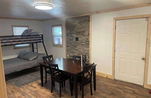 We have a completely remodeled trail house! 3 bedrooms with bunk beds, along with 1 bunk bed out in the shared space, new black stone to cook on, along with new dishwasher and stove. You will not have to worry about anything except what trails you will be riding, we are only 2 miles to trail heads, and direct access to outlaw trails across the drive. With 2 full showers there will be no waiting to go out after riding all day.