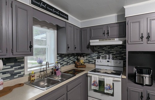 Trail Riders Retreat has been completely renovated and offers 2 bedrooms and 1 bath for your family or closest friends to enjoy together! The master bedroom offers a king size bed and a twin-size daybed, second bedroom offers a bunk bed with a full-size bottom bunk and a twin-size top bunk. The entire house has all new furniture and is richly decorated with a country theme that will surely give you that home away from home feeling.