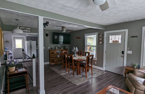 Whether you choose to visit one of the restaurants in Williamson, South Williamson or cook at the house, you have plenty of options! The kitchen is fully equipped with a stove/oven, microwave, air fryer, Kerig/coffee pot, dish washer, utensils, and pots/pans. The dining room and living space are well and comfortably furnished to offer a relaxing space for your group while watching something on a 65-inch Roku Smart TV.