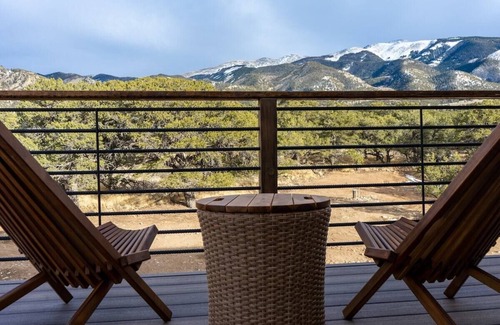 This luxurious and cozy cabin is tucked into the foothills of the Sangre de Cristo with gorgeous mountain views and the tranquility of nature. Besides enjoying your time at this getaway, venture out to see the Great Sand Dunes National Park and hike the Zapata Waterfall, both less than 10 minutes from the cabin. Don't forget to relax in the hot tub after hiking or cozy up with your favorite drink by the fireplace. After dark, gaze upward on a clear night for an incredible stargazing opportunity.