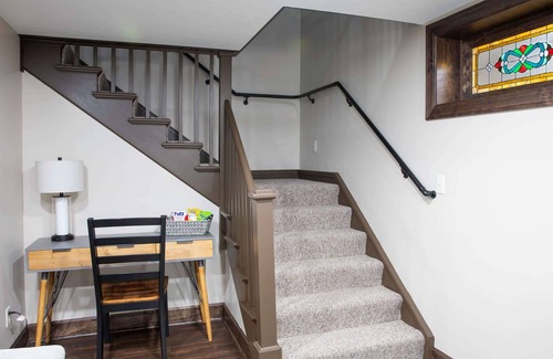 Welcome to Applefest Suite! This charming two-story retreat celebrates Franklin's most iconic event, Applefest. Enjoy a fully equipped kitchen with a cozy sitting area downstairs, perfect for relaxation. Upstairs, unwind in the spacious king bedroom and indulgent bathroom, designed for comfort. Experience the vibrant spirit of Applefest while enjoying modern amenities and a serene atmosphere. Your ideal getaway awaits!