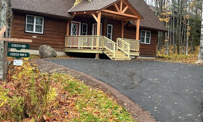 The spacious layout includes 2 kings and 4 queens across the 6 bedrooms, making it ideal for large groups. Czech Inn also offers an expanded parking area, accommodating up to 6 cars or snowmobile trailers, ensuring that your group has plenty of space for all vehicles.