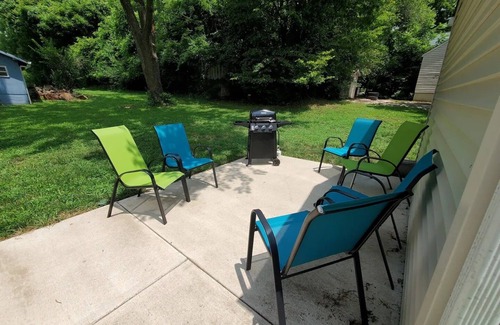 Lovely home on a huge acre lot 1.5 miles from the sports complex and 2 houses from the Rock Island bike trail. Come stay at our house and bike or walk to the games. Dogs welcome and will be in love with our huge back yard. 2 bedrooms on the main floor with queen beds. Large open attic space with 2 queen beds and 2 twin beds. Fully stocked kitchen and bathroom. Just bring your suitcases! Also great place to work from home. GoogleFiber provided and a work station. Must be 25 to rent.
