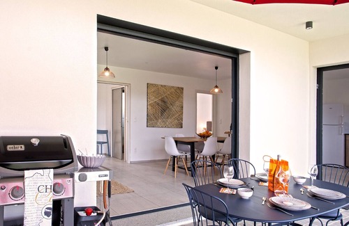 Outdoor (private use) : covered terrace and small garden. Garden furniture at your disposal, dining table for 6 people.
