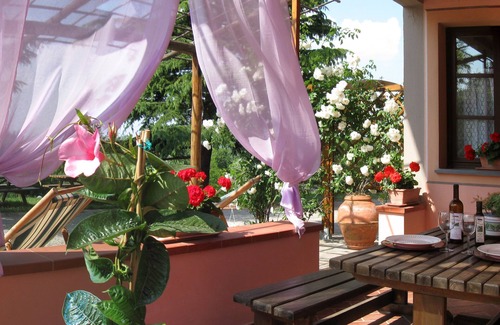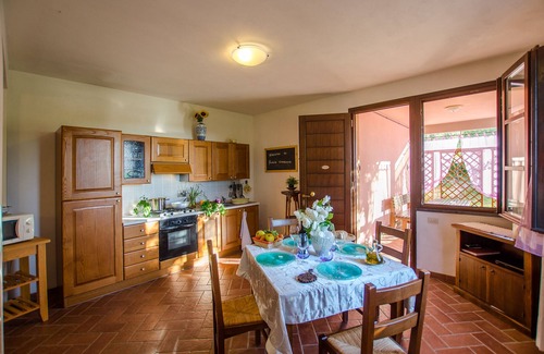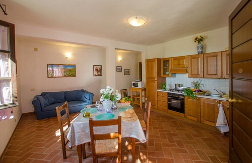 The typical Tuscany terra cotta floors is throughout the apartment. Intimate, ideal for two but equally indicated for up to four. High standard outdoor wooden table & chairs, free wi-fi internet access.