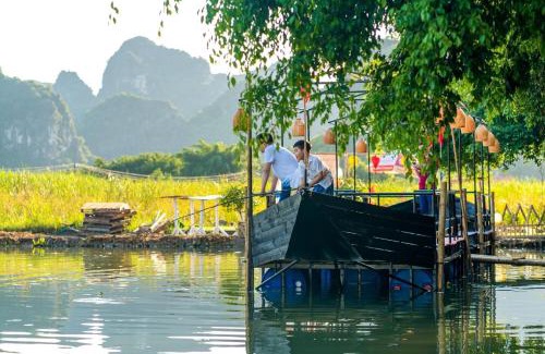 With mountain views, Trang An Legend Bungalow is located in Ninh Binh and has a restaurant, room service, bar, garden, year-round outdoor pool and terrace. Complimentary WiFi is offered throughout the property. There's a private bathroom with bidet in every unit, along with free toiletries, a hairdryer and slippers. À la carte and continental breakfast options are available at the lodge. The wellness area at Trang An Legend Bungalow features a sauna. Guests at the accommodation are welcome to enjoy pool on site, or go fishing or cycling in the surrounding areas. Bai Dinh Temple is 10 miles from Trang An Legend Bungalow, while Phat Diem Cathedral is 20 miles away. Tho Xuan Airport is 50 miles from the property, and the property offers a paid airport shuttle service.