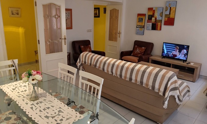 Nestled in Gandia, this delightful apartment offers a beautiful living space for guests. With 2 cozy bedrooms and a spacious living room featuring 2 sofa beds, this phenomenal property is perfect for a relaxing getaway. Enjoy the fabulous amenities like AC, heating, and an iron during your stay. A great place to call homebase while you're away, we hope you enjoy your stay.