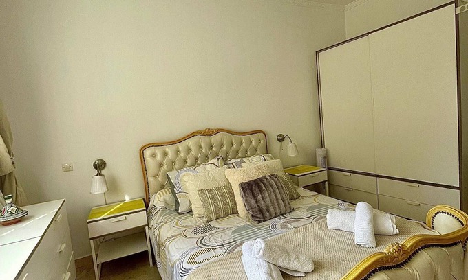 Get ready to relax in this 2-bedroom apartment in Tangier. This delightful property features 2 queen beds, a cozy living space, and a bathroom with a jetted bathtub. Guests can enjoy the convenience of heating, AC, and other essential amenities during their stay. Fall in love with Tangier and enjoy the magic it has to offer.