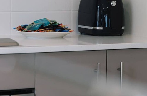 Fully equipped kitchen equipped with quality appliances: fridge, toaster, kettle, oven & microwave & dishwasher.
