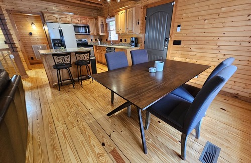 The cabin offers many amenities to include high-speed fiber internet, a desk for work from home opportunities, an EV charger, and an outdoor grill and dining area to enjoy the abundant fireflies and refreshing mountain air.