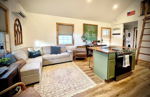 Located in the Heart of the Ozarks, our Tranquil Farmstay cabin is exactly that. A newly built space designed specifically for our guests' enjoyment. The cabin best accommodates couples, small families or small groups. The interior blends a rustic aesthetic with modern design, featuring a stunning kitchen and open living area. You'll enjoy beautiful countryside landscapes, cattle, sunrises and sunsets, or venture over to the beautiful rivers, lakes, and vast Ozark attractions.