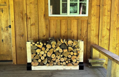 This lovely cabin offers a tremendous experience for guests. Nestled in a serene setting, you'll find yourself surrounded by nature's beauty. The cozy, memory foam queen bed, ensures a restful night's sleep. Stay connected with WiFi, cuddle up with a book by the wood stove, enjoy the kitchen and eating area and utilize the BBQ for food preparation. The bathroom offers a refreshing outdoor shower with plenty of hot water. The bathroom facilities feature an outhouse with state of the art Nature’s Head composting toilet. The front porch is a great spot for morning coffee or tea. An exploratory spin on the kayaks around the three acre pond is very relaxing Fishing is also an option. Raspberries and blueberries are available in season, apples and cider in the fall and the chickens gladly share their eggs for a tasty breakfast. Whether you're seeking a peaceful retreat or a bit more adventurous getaway, our cabin is the perfect choice. A great spot for you and your significant other or a memorable parent/child special trip - a stay at the cabin is a holiday for the books!