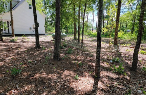 Outside, relax on the front porch with your morning coffee or unwind in the hammock while soaking in the peaceful surroundings. Explore the nearby nature trails or simply enjoy the private, wooded setting.