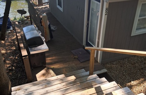 Discover the beauty of Edwards from this 2-bedroom cottage. This delightful property features 1 king bed and 1 futon, along with a bathroom equipped with a bidet and shower. With amenities like an iron, washing machine, heating, and AC, guests will feel right at home. It's easy to see why you'll be able to unwind at our place. Also enjoy your private dock, boat lift, and diving platform.