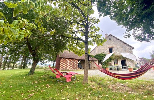 2 charcoal BBQs and Gas stove, garden tables with chairs and parasols, fairy lights, large garden sofa, bench, picnic table, deckchairs and hammocks, gazebo with bistro table and chairs, sandbox, pond where you can fish, electric car socket, recycling, etc. Not included: oil heating and wood to be paid at the end of the stay. Towels/household linens (supplement €12 per person for the stay). Additional beds are available - 15 people maximum with a supplement of €15/night/person. Large gatherings are possible for parties with the living room and garden area. Additional tables and benches are available on site. End-of-stay cleaning (excluding dishes and trash) €110 is mandatory and additional, to be paid upon booking or upon key collection upon arrival. Mandatory supplement per pet: €10/night. Living room, bathroom, toilet, one bedroom and utility room are wheelchair accessible.