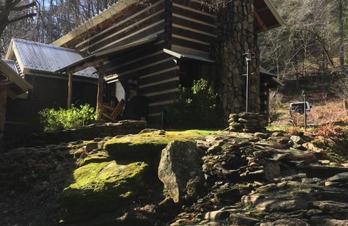 THE ULTIMATE ROMANTIC GETAWAY BY THE CREEK - Come and see God's natural beauty displayed for your enjoyment! Secluded on a beautiful 20 acre tract in gated Leatherwood Mountains. A Luxury One Bedroom Log Cabin built by a local architect husband / wife team that put 3 years into building this beautiful log cabin. You will love the complete privacy of the surrounding wildlife and a year-round rocky creek you see from every room. Take note of the master bathroom! It is as if you are outside while relaxing in our jet tub or enjoying our rain shower. The outdoor salt water hot tub is great for a soothing massage while listening to the creek and sounds of the forest, without any harsh chemicals to irritate sensitive skin, so all can enjoy!