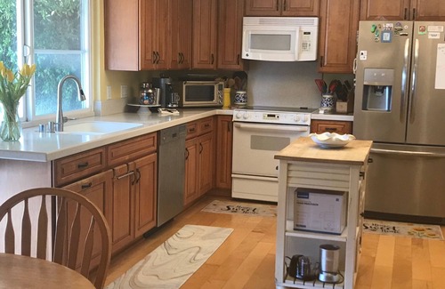 Our Goleta home with a solar heated swimming pool and free standing Hot Tub is the perfect place to come to relax and unwind. You'll love the open kitchen with a brand new Stove and Oven, including Air Fry and Convection! We have surround sound movie watching when inside and go outside bask in the sun and have fun in our pool or play ball on the large front lawn or in the quiet cul-de-sac. Perfect for couples or swim aged families or celebrations on the beautiful California coastline. Walk over to Glen Annie Golf Course for a round or to the Tennis Courts for a match or down to the local diner for a delicious breakfast burrito. Just minutes from the Ritz Carlton beach area or head downtown to Santa Barbara and Montecito, for beach volleyball and epicurean delights. We have 3 bedrooms and 2 bathrooms, all the bedrooms have black out blinds for a full nights sleep. There are new fixtures in both bathrooms with shower spray heads, removable sprayers and plenty of towels.