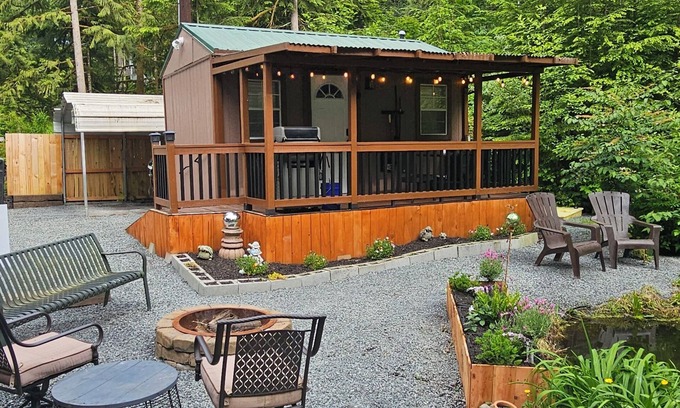Escape to nature's heart in our cozy gues/tiny house cabin, nestled in Canyon Falls neighborhood, Granite Falls. Enjoy adventure and relaxation with easy access to Cascade mountain trails and stunning natural features, just 1 hour from Seattle.