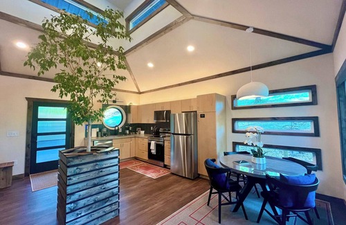 Cozy up with radiant heated bathroom floors, a luxurious soaker tub, and a two-person shower with a large rain head. Wind down in the high-end massage chair or enjoy games, puzzles, or quiet time in thoughtfully lit living spaces. Other amenities include a washer and dryer, hair dryer, king bed, Roku TV and WiFi.