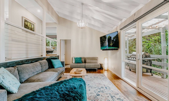 You'll be treated to a warm and comfortable 3 bedroom house nestled in the rainforest, with views of Belgrave Lake Park, birds, alpacas grazing, and the most wonderful forest sights and sounds.