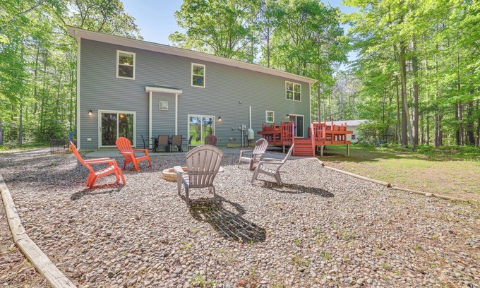 Experience a waterfront retreat with friends and family at this vacation rental in Gaylord, MI! Located on a secluded 12-acre property, this 5-bed, 3-bath vacation rental offers the best of both worlds — as much serenity as you'd like with easy access to shopping, golfing, boating, and more. Enjoy multiple spaces at 'Fowler Lake Lodge' to unwind, whether you play a fun game of foosball, cook an al fresco dinner on the grill, roast marshmallows by the fire pit, watch the sunset from the dock!