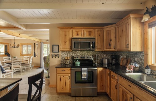 The updated kitchen is equipped with stainless steel appliances and offers ample counter space for all your culinary endeavors. Whip up a delicious meal while enjoying the company of your guests, or dine al fresco on the deck and relish the fresh lake breeze as you indulge in your creations.