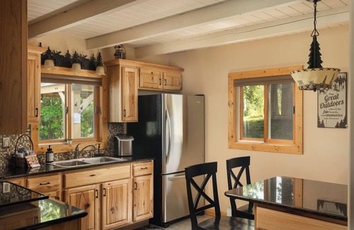 Situated right by the lake, this cottage provides endless opportunities for outdoor activities -- kayaks, rowboat, and pedal boat included. Take advantage of our private dock, perfect for swimming, sunbathing, or even casting a line for some fishing. If you're looking to explore the area, the town's shops, restaurants, and attractions are just a short drive away, ensuring convenience without compromising the tranquility of our lakeside oasis.