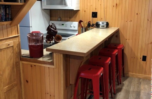 The cabin has air conditioning for those occasional sticky days and a whole house generator if, for some reason the power goes out. There is also a washer and dryer and extra refrigerator located in the garage.