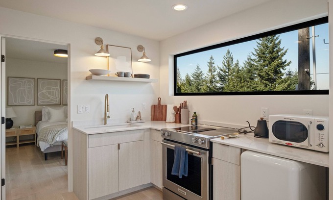 Welcome to our charming guesthouse with serene lake views, located in the heart of South Seattle! Thoughtfully designed for comfort and convenience, this 550 sq ft, 2-bedroom, 1-bath retreat makes the most of its space with a warm, efficient layout and cozy touches throughout. It offers a peaceful escape while keeping you close to Seattle's top attractions.
