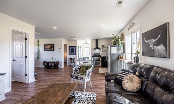 Welcome to the charming 2BR 1Bath oasis on the magical 25-acre farm tucked back off a long gravel road. Escape the big-city crowds, take in the breathtaking views, and enjoy the tranquil and friendly ambiance where kids play, and the animals roam.
